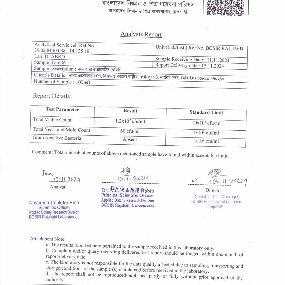 ডায়াবেটিস কেয়ার রেমিডি (নয়নতারা রেমিডি) ডায়াবেটিস ও ডায়াবেটিস এর জটিলতা নিরাময়ে কাজ করে । ইনসুলিন উৎপাদনে সহায়ক। ডায়াবেটিস নিয়ন্ত্রন রাখতে সহায়ক। কোন প্রকার পার্শপ্রতিক্রিয়া নেই। 6/7 দিন নিয়মিত খাবার পর ডায়াবেটিস এর ঔষধ আস্তে আস্তে ছেড়ে দিবেন। আলহামদুলিল্লাহ অনেক ভালো কাজ করে । ।
